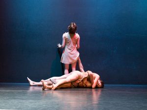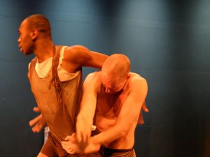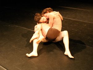 This piece is inspired on the sensation of falling and its metaphorical significance: surrendering to the vertigo of affection in a mix of exhilaration and fear. Driven by such sensorial inebriation the work explores the verge of physical pleasure where the need of sensing the others becomes an act of subversion.